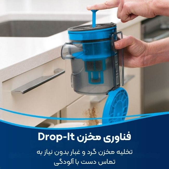 سیستم “Drop-It Tank” به شما امکان میدهد مخزن گرد و غبار را بدون تماس دست خالی کنید.