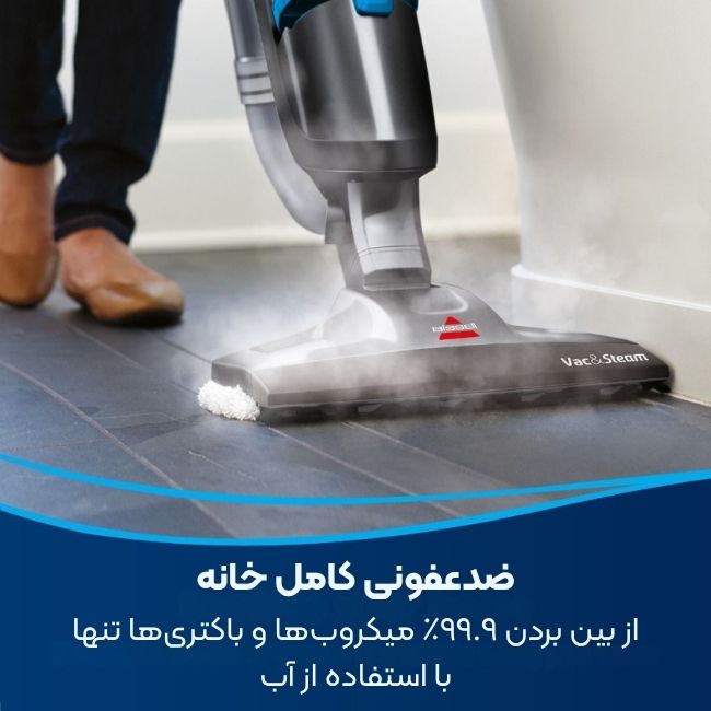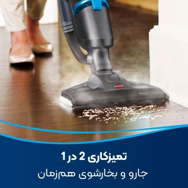 بیسل 1977E هم جاروبرقی دارد و هم بخارشوی ، یعنی شما میتوانید همزمان گرد و غبار را مکش کرده و سطح را با بخار ضدعفونی کنید.