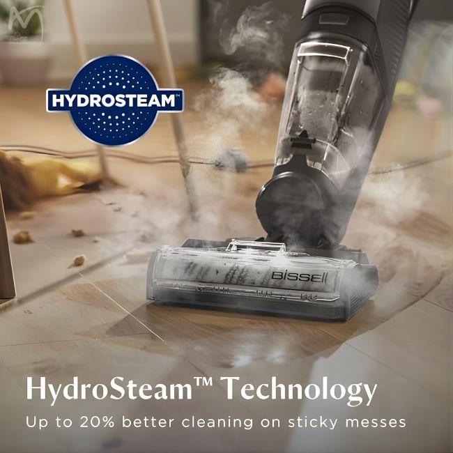 - تکنولوژی اختصاصی HydroSteam بخار را مستقیماً با محلول تمیزکننده ترکیب میکند.