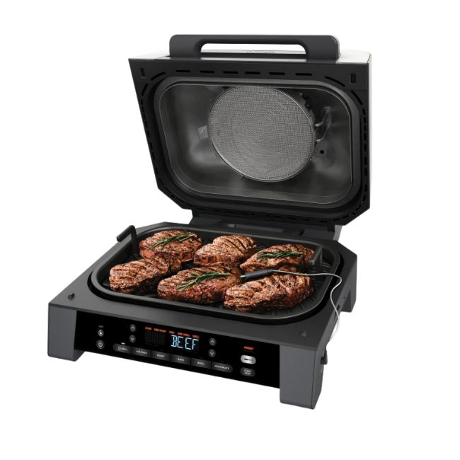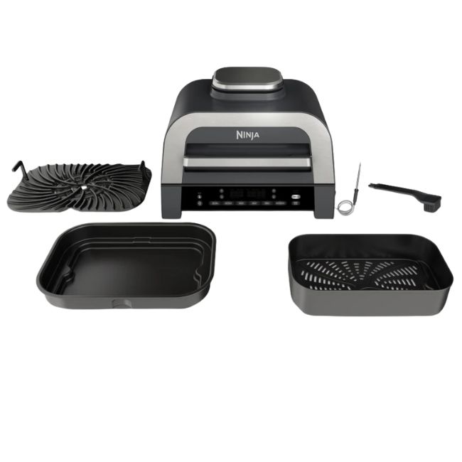 سرخ کن و گریل نینجا مدل DG551 یکی از محصولات پیشرفته و چندکارهی برند نینجا است که با طراحی مدرن و امکانات هوشمند، تجربهای متفاوت از آشپزی را برای شما فراهم میکند. این دستگاه با ترکیب قابلیتهای گریل کردن، سرخکردن بدون روغن، پخت و خشککردن مواد غذایی، به شما امکان میدهد انواع غذاها را با کیفیتی بالا و بافتی ترد و خوشمزه آماده کنید. وجود نمایشگر دیجیتال LED و صفحه کنترل لمسی باعث میشود تنظیم دما، زمان و حالتهای مختلف پخت بسیار ساده و دقیق باشد. همچنین، دماسنج هوشمند داخلی این مدل به شما کمک میکند تا میزان پخت غذا را مطابق سلیقهی خود (از Rare تا Well Done) کنترل کنید. بدنهی مقاوم با عایق سرد، پایههای ضدلغزش و سیستم ضد دود، ایمنی و راحتی بیشتری در استفاده روزمره فراهم میآورد. در مجموع، DG551 یک دستگاه همهکاره و کارآمد است که برای خانوادههایی که به دنبال غذای سالم، سریع و خوشطعم هستند، انتخابی ایدهآل محسوب میشود.
