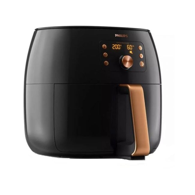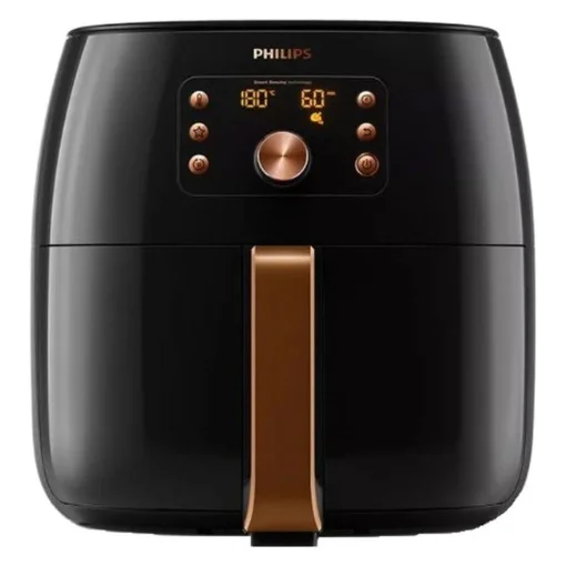 سرخ کن بدون روغن فیلیپس مدل HD9863 که با نام Premium Airfryer XXL شناخته میشود، یکی از پیشرفتهترین محصولات فیلیپس در حوزه پختوپز سالم است. این دستگاه با ظرفیت بزرگ ۷.۳ لیتری و توان ۲۲۲۵ وات، امکان تهیه غذا برای خانوادههای پرجمعیت را فراهم میکند. فناوریهای نوآورانه مانند Smart Sensing برای تنظیم خودکار زمان و دما، و Fat Removal برای کاهش چربی اشباع تا ۵۰٪، باعث میشوند غذاها هم خوشطعم و هم سالمتر باشند. طراحی مدرن با رنگ مشکی و جزئیات مسی، جلوهای لوکس به آشپزخانه میدهد. این مدل در سال ۲۰۱۹ معرفی شد و بهعنوان نسل جدید سرخکنهای بدون روغن فیلیپس، همچنان یکی از محبوبترین گزینهها برای کسانی است که به دنبال ترکیب سلامت، سرعت و کیفیت در آشپزی هستند.